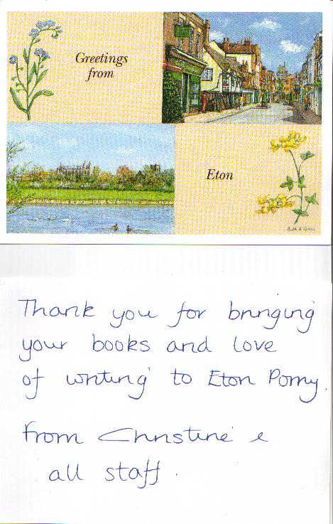 Thank you card from Eton Porny First School in Windsor and article in the Windsor Newspaper.